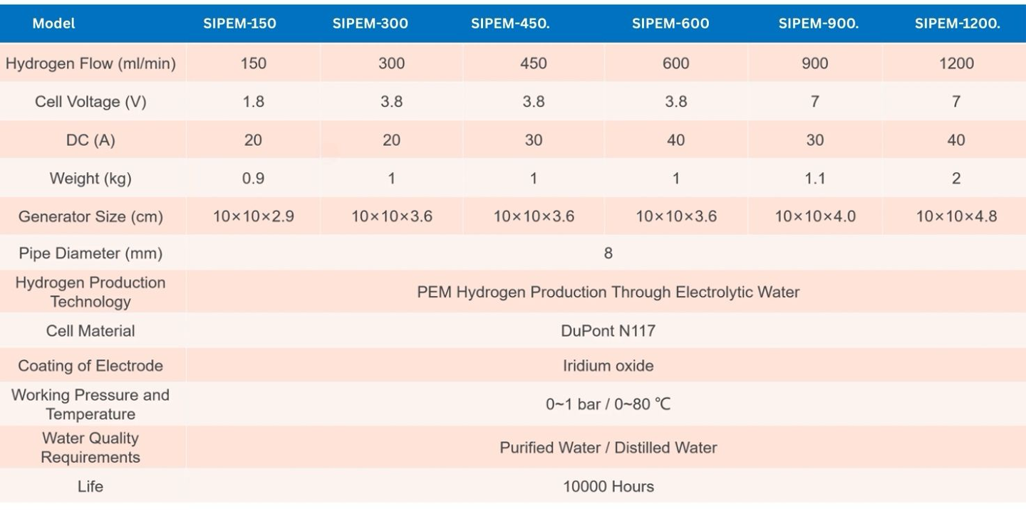 - High Efficiency: Direct water electrolysis technology of PEM technology.